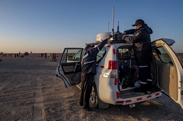 14時(shí)30分,中國(guó)電信甘肅、新疆公司聯(lián)合保障分隊(duì)在東風(fēng)著陸場(chǎng)指定區(qū)域完成集結(jié),各類應(yīng)急通信車輛同步就位,與搜救力量緊密協(xié)同,進(jìn)入臨戰(zhàn)狀態(tài)。16時(shí)30分,聯(lián)合保障分隊(duì)抵達(dá)落地區(qū)域,立即展開行動(dòng)——靜中通應(yīng)急通信保障車迅速對(duì)準(zhǔn)衛(wèi)星,僅用數(shù)分鐘便完成4G網(wǎng)絡(luò)搭建,不僅實(shí)現(xiàn)保密手機(jī)即時(shí)連通,更確保搜救指揮指令“秒級(jí)傳達(dá)”。與此同時(shí),3臺(tái)動(dòng)中通應(yīng)急通信車全程伴隨核心搜救車隊(duì)機(jī)動(dòng)行進(jìn),保障移動(dòng)狀態(tài)下通信不中斷。整套天地一體應(yīng)急通信體系,在無(wú)電、無(wú)網(wǎng)的荒漠腹地高效運(yùn)轉(zhuǎn),真正做到了“車動(dòng)人動(dòng)、信號(hào)不斷”,為航天員安全出艙和后續(xù)轉(zhuǎn)運(yùn)提供了堅(jiān)實(shí)的信息支撐。