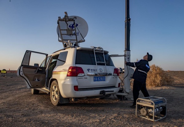 面對(duì)著陸場(chǎng)地形復(fù)雜的挑戰(zhàn),接到保障任務(wù)后,中國(guó)電信甘肅公司和新疆公司第一時(shí)間啟動(dòng)三級(jí)聯(lián)動(dòng)機(jī)制,組建聯(lián)合保障分隊(duì),先后兩次深度參與酒泉衛(wèi)星發(fā)射中心組織的全流程演練,并三次深入無(wú)人區(qū)測(cè)試,全面評(píng)估設(shè)備性能。在此基礎(chǔ)上,團(tuán)隊(duì)制定了“分類保障、動(dòng)態(tài)覆蓋”方案,確保通信保障精準(zhǔn)到每一臺(tái)設(shè)備、每一個(gè)時(shí)間節(jié)點(diǎn)。通過(guò)為核心搜救車隊(duì)調(diào)派3臺(tái)“動(dòng)中通”應(yīng)急通信保障車,實(shí)現(xiàn)車隊(duì)行進(jìn)中手機(jī)信號(hào)持續(xù)覆蓋;為其余搜救車輛配備35臺(tái)天通車載衛(wèi)星通信終端,確?;A(chǔ)通信不中斷;為返回艙落點(diǎn)區(qū)域配備1輛靜中通應(yīng)急通信保障車,專項(xiàng)負(fù)責(zé)落點(diǎn)區(qū)域手機(jī)信號(hào)覆蓋;建立后臺(tái)實(shí)時(shí)監(jiān)控設(shè)備機(jī)制,確保整個(gè)通信網(wǎng)絡(luò)可控、可靠。