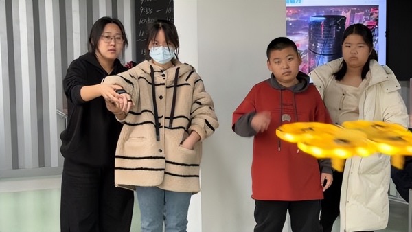 中國(guó)電信赤峰分公司精心設(shè)置了前沿科技體驗(yàn)區(qū),邀請(qǐng)家長(zhǎng)與孩子共同參與。在專業(yè)人員的指導(dǎo)下,孩子們親手試操作無(wú)人機(jī),感受進(jìn)行握手、跟隨、繞行等趣味互動(dòng)。這場(chǎng)“與未來(lái)的對(duì)話”不僅讓孩子們?cè)谟螒蛑兄庇^了解了機(jī)器人的工作原理與傳感技術(shù),更在他們心中播下了探索人工智能世界的種子。