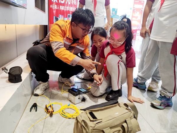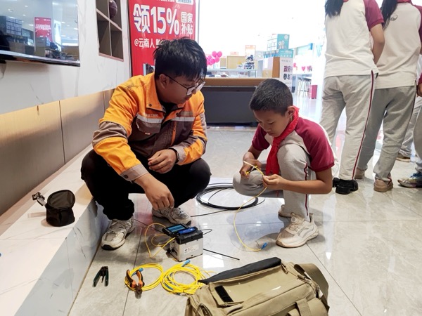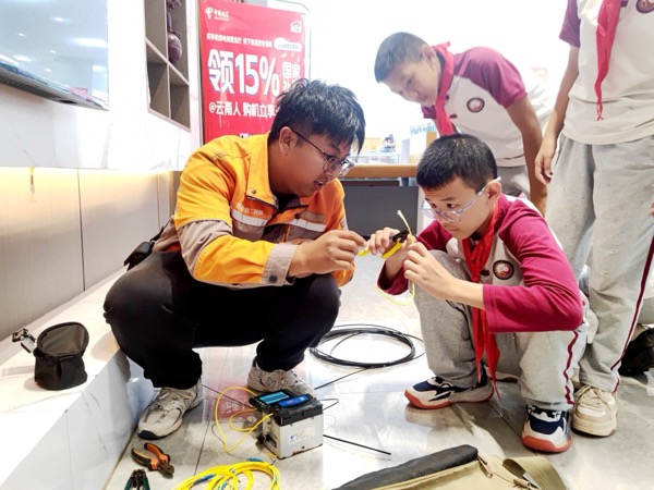 近日,云南省普洱市思茅三小學(xué)生走進(jìn)中國(guó)電信普洱分公司世紀(jì)廣場(chǎng)營(yíng)業(yè)廳,開(kāi)展通信科技實(shí)踐活動(dòng)。在智慧家庭工程師指導(dǎo)下,學(xué)生們通過(guò)理論講解、設(shè)備演示及動(dòng)手實(shí)操,深入了解了現(xiàn)代通信技術(shù)。活動(dòng)中,工作人員以"手機(jī)心臟"比喻芯片功能,借助光貓、路由器等設(shè)備直觀演示家庭網(wǎng)絡(luò)"信號(hào)接力"原理。智慧家庭工程師現(xiàn)場(chǎng)操作光纖熔接機(jī),以高壓電弧精準(zhǔn)熔合發(fā)絲細(xì)的光纖,搭建起"信號(hào)傳輸橋梁",并對(duì)比講解FTTR技術(shù)突破——該技術(shù)通過(guò)光纖到房間實(shí)現(xiàn)全屋千兆覆蓋,有效解決傳統(tǒng)WiFi穿墻信號(hào)衰減問(wèn)題。實(shí)操環(huán)節(jié)學(xué)生分組體驗(yàn)光纖整理、設(shè)備連接等項(xiàng)目,嘗試光貓路由器組網(wǎng)及光纖護(hù)套剝離,現(xiàn)場(chǎng)測(cè)試全屋無(wú)死角信號(hào)覆蓋效果。活動(dòng)通過(guò)"理論+實(shí)踐"模式,幫助學(xué)生從科技使用者轉(zhuǎn)變?yōu)榭萍继剿髡撸ぐl(fā)對(duì)通信技術(shù)的興趣。