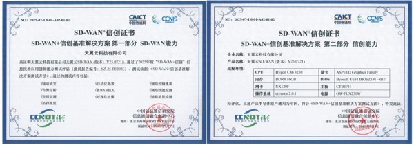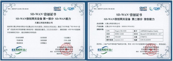 近日,天翼云科技有限公司“天翼云SD-WAN”順利通過中國信息通信研究院(以下簡稱“中國信通院”)“SD-WAN?信創(chuàng)”項(xiàng)目評估,在“SD-WAN+信創(chuàng)基準(zhǔn)解決方案”“SD-WAN信創(chuàng)控制器”及“SD-WAN信創(chuàng)網(wǎng)關(guān)設(shè)備”三大核心模塊的評估中表現(xiàn)優(yōu)異,成為國內(nèi)首批通過該系列認(rèn)證的云服務(wù)商。這標(biāo)志著天翼云在SD-WAN信創(chuàng)領(lǐng)域的技術(shù)成熟度、安全可靠性及專業(yè)能力獲得了行業(yè)權(quán)威認(rèn)可,為構(gòu)建自主可控、安全可靠的數(shù)字基礎(chǔ)設(shè)施提供了堅(jiān)實(shí)支撐。