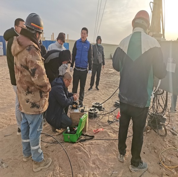 群眾的急難就是行動的指令。剛卸下裝備,張斌就帶著隊員頂著嗆人的沙塵徒步勘察,在礦區(qū)周邊10余平方公里的范圍內(nèi)反復(fù)丈量。戈壁灘上無參照物,他們就用腳步標記路線;風(fēng)沙迷眼難睜眼,就輪流用衣角擦拭護目鏡。經(jīng)過4個多小時的踏勘,一個創(chuàng)新方案逐漸清晰:利用就近原重能火電廠生活區(qū)的閑置設(shè)備進行利舊改造,敷設(shè)16公里光纜連接礦區(qū),同時借用礦上發(fā)電機為基站臨時供電——這個方案不僅能縮短工期,更能大幅降低施工成本。