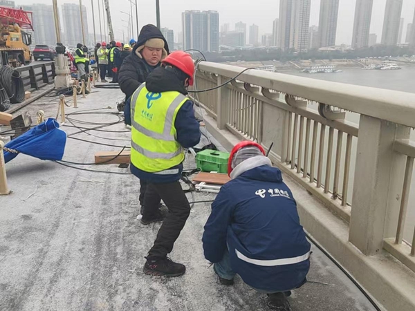 1月21日,長沙冰凍天氣導(dǎo)致三叉戟大橋(過江重要路段)通信線路故障。城西維護中心人員迅速集結(jié),冒著寒風(fēng),及時修復(fù)受損線路,保障跨江通信“大動脈”暢通。