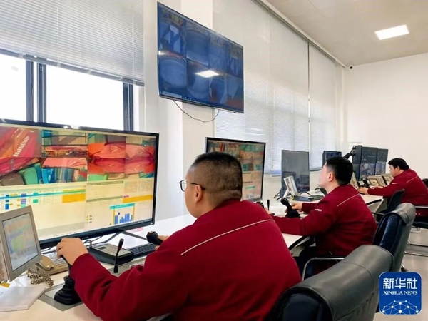 工作人員在智能調(diào)度中心遠(yuǎn)程操控場(chǎng)橋作業(yè)