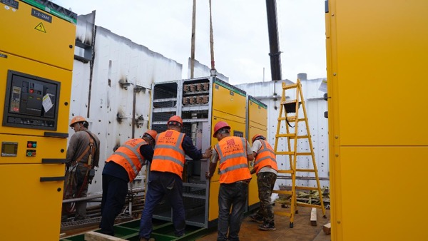 項目正式進場后,面對氣候、數(shù)據(jù)艙結(jié)構(gòu)施工以及環(huán)境場地對工期造成的影響,團隊克服了高溫、高濕、密閉空間施工等困難,努力協(xié)調(diào)中交三航局爭取機電作業(yè)面,同時利用一切條件組織機電內(nèi)部電氣、暖通、弱電等專業(yè)交叉施工,各班組24小時不間斷作業(yè)。 終于在要求的時間節(jié)點前,保質(zhì)保量地 完成了所有設(shè)備的安裝、主干電纜的敷設(shè)、機柜服務(wù)器上架等工作,為下一步海上落位爭取了時間,為項目的整體交付作出了應(yīng)有的貢獻。